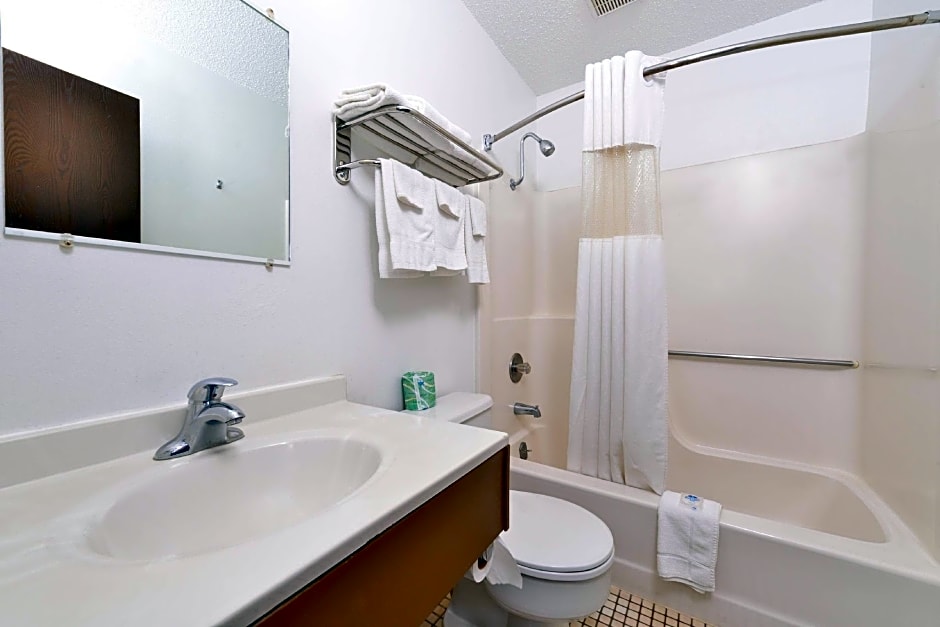 A cable TV with seating area is featured in this spacious room. A microwave and refrigerator are also included.